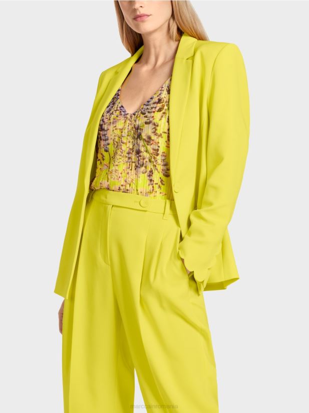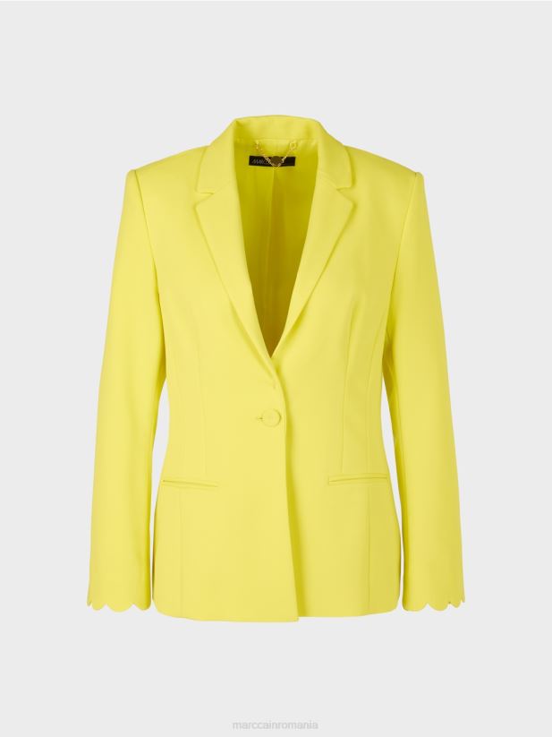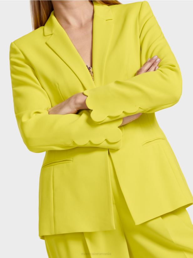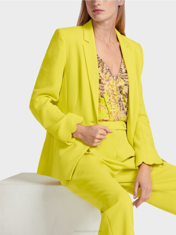 forma potrivită a acestui blazer este obținută prin cusătura prințesă. materialul ușor și fluid îi conferă o silueta moale. există buzunare cu pădure subtile și un rever îngust în față. tivul mânecilor festonat adaugă un detaliu decorativ. blazerul are și o aerisire în spate.