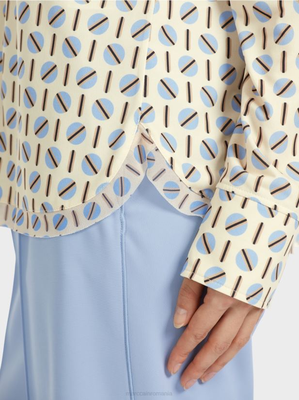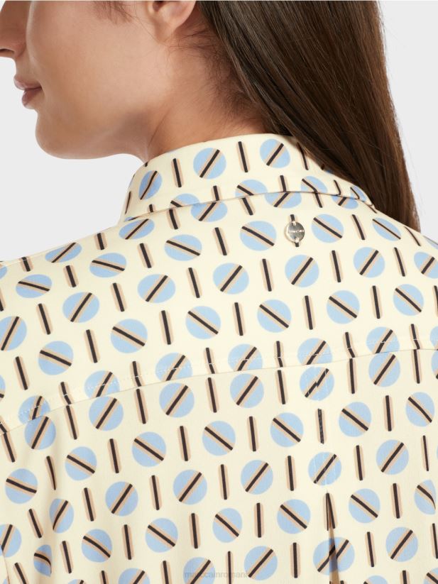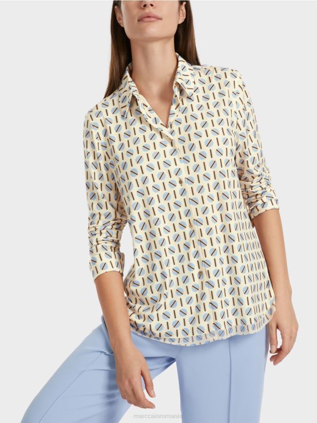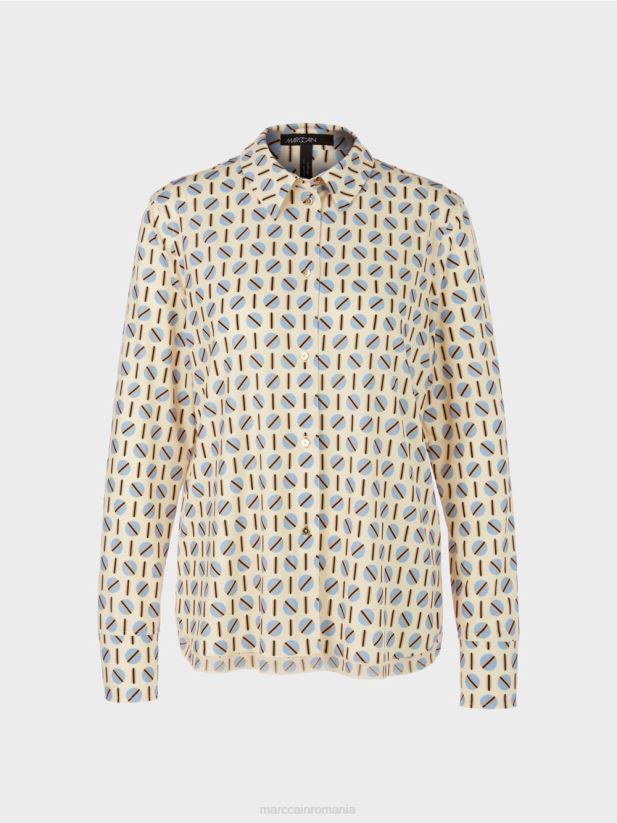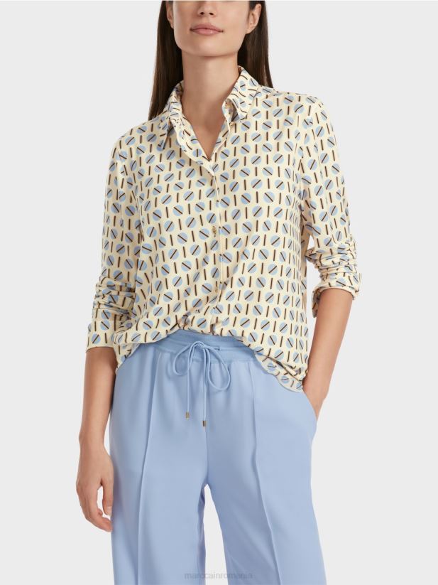 bluza cu croială lejeră se prezintă cu imprimeu captivant și este confecționată dintr-un amestec de materiale fluide. spatele vine cu pliu iar tivul rotunjit are o margine dubla. butoanele decorative pun accente speciale.