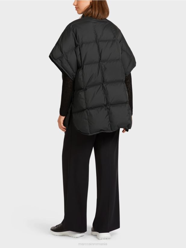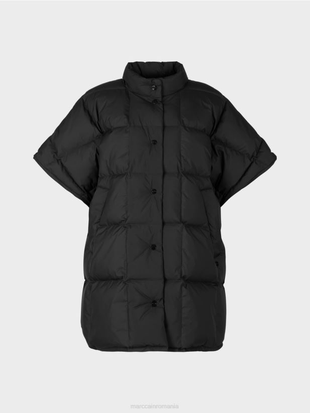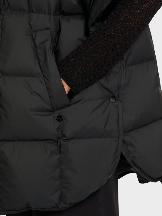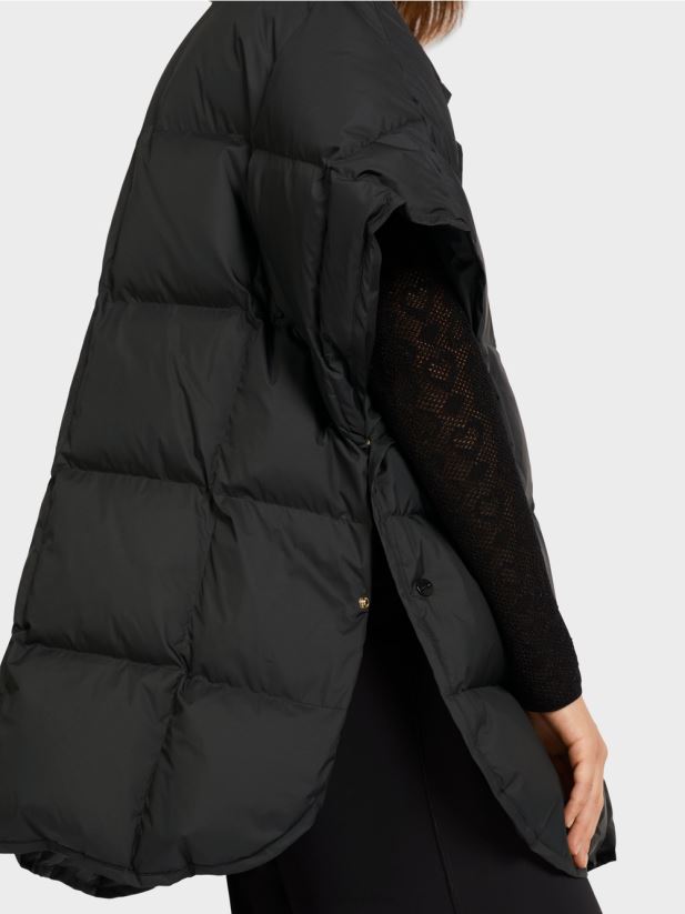 vestă matlasată încălzitoare, cu o siluetă lejeră. această vestă lejeră, cu mâneci, poate fi purtată aproape ca o haină. este însoțitorul ideal pentru zilele mai răcoroase datorită interiorului cu pene și puf. vesta se inchide cu capse presate. are un guler ridicat și buzunare cu pătură. are tiv rotunjit. detaliu practic: se deschide complet din lateral prin butoane presate.
