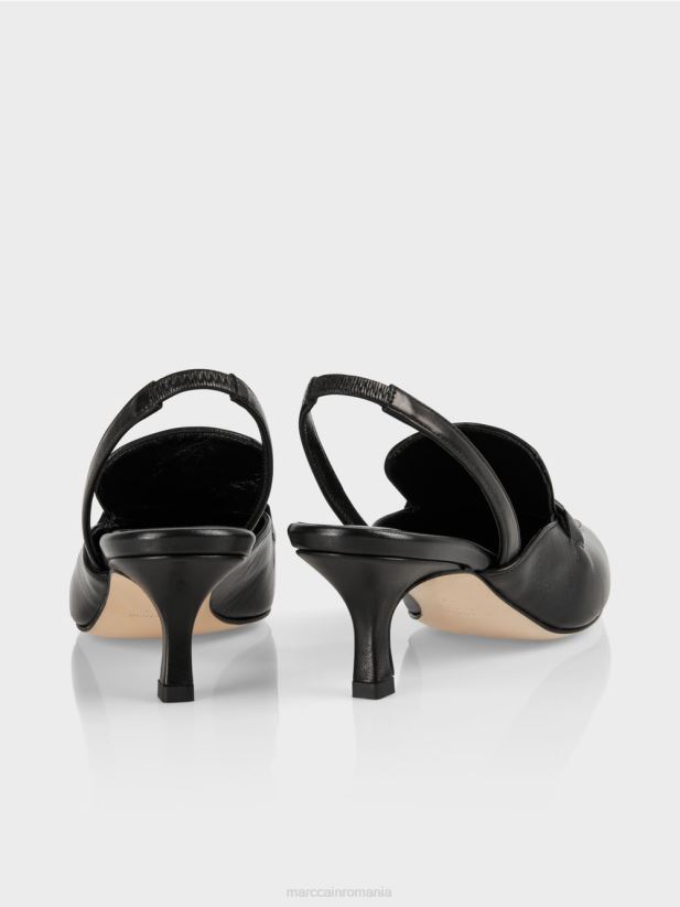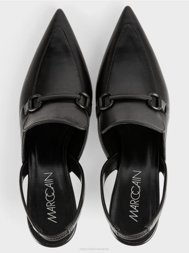 pantofi de înaltă calitate, cu bretele decorative și vârf ascuțit conic. tocurile elegante au toc infasurat si limba lunga. o cusătură decorativă accentuează forma ascuțită. călcâiul este deschis și vine cu o curea.