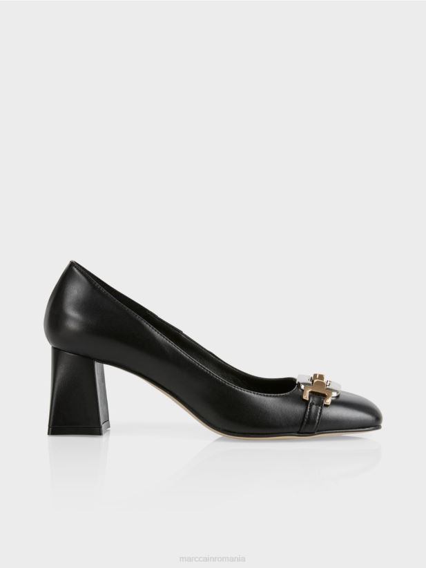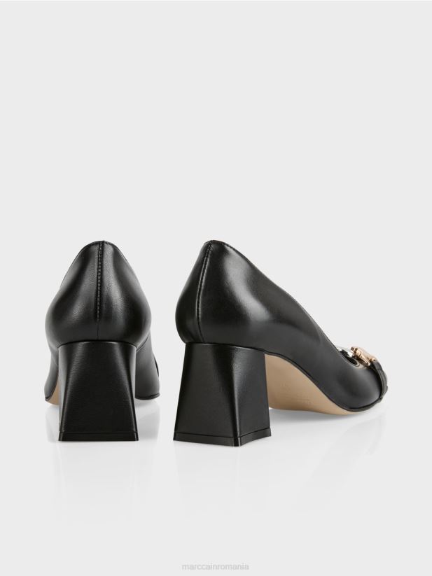 acești pantofi înalți se prezintă cu un toc bloc acoperit. sunt fabricate din piele netedă de înaltă calitate. o inchizatoare decorativa metalica evidentiaza stilul feminin. designul este completat de un vârf de formă pătrată.